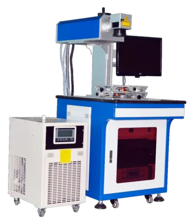 Glass Laser marking machines equiped with high speed digital galvanometer and ultraviolet laser wave length and smaller focus spot. UV laser marking machine heat affects smaller areas to avoid damaged material. High efficiency High accuracy No consumables Low maintenance cost Stable performance Long term operation Applications Packing bottle of cosmetics, medicines, food other polymer material marking Flexible PCB plate marking Scribing silicon wafer Microporous LCD liquid crystal glass Blind hole processing Glass marking Metal surface coating removal Plastic buttons Electronic components Communication equipments